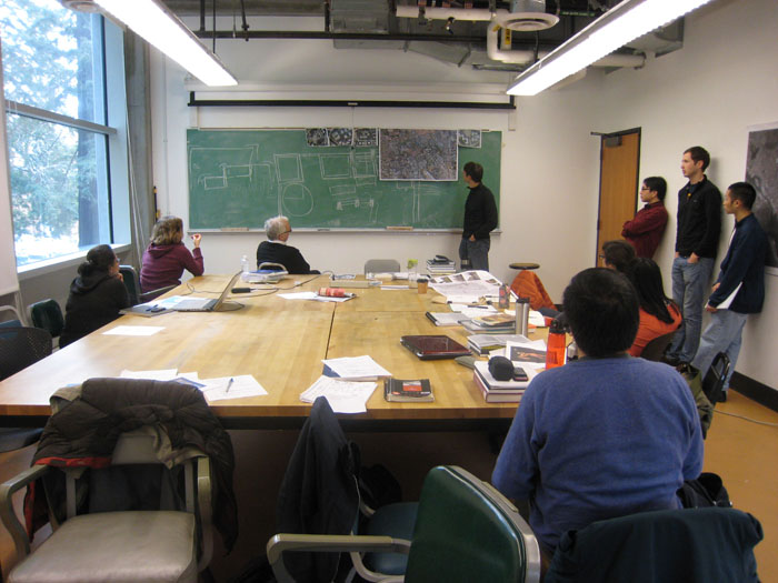 Spring Semester(春学期)に入って、新しく授業が始まっています。 その中から、MUD(Muster of Urban Design)という都市デザイン演習の授業と、Thesis(修士設計)について紹介します。 まずMUDという都市デザイン演習ですが、サンフランシスコのエンバカデロ(Embarcadero)地区を対象として、集合住宅と主とする複合施設群をデザインするという内容です。 この地区は、1985年の地震で破損したフリーウエイを撤去した後に、公園やテニスコート、プールなどがつくられました。しかしそれらは、この都心地区には必要でない土地利用です。また、サンフランシスコ市は、現在、住宅不足が問題となっています。そこで、この地区に住宅を設計するという課題が設定された訳ですね。 写真は、授業の第1日目に、ピーター(Peter)がサンフランシスコの都市環境シミュレーションモデルを囲んで、対象地区とその周辺の状況について説明している様子です。 学生たちは、この模型を初めて見たのでビックリしていましたね。意見交換も盛り上がっていました。 次は、修士設計についてです。これは今年8月までかけて仕上げるものです。学生は、各自テーマと対象地区を決めて、設計を進めていきます。 第1日目は、学生たちが検討しているテーマと対象地区について、順番に発表し、意見交換をしていました。 二つ目の写真のような感じです。 これの第2日目は、参考文献、論文を収集し、発表し合うという内容でした。参考文献、資料の収集については、2週間かけてやってしっかりやっていました。 興味深かったのは、ゼミに図書館員(Librarian)を呼んで、参考文献探しのアドバイスをしてもらっていたことです。 ここUCバークレーだけではなく、欧米の大学図書館員は、ものすごく図書に詳しく、人格も優れています。 これは日本の大学図書館とは大きく異なることです。見習わなければなりません。 |