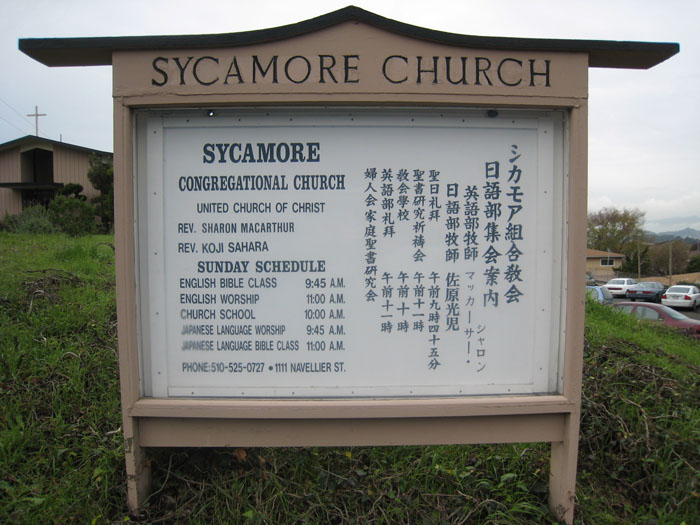ここバークレーでは、研究以外にも様々な人と知り合い、また色々と訪問しました。 アルバニーのアダルトスクールで知り合ったマリエさんのご主人が、日本語教会の牧師さんだということで、ミサの時にその教会を訪問してきました。 バークレーの北El CerritoにあるSycamore Church(シカモア教会)です。 日本語でミサをする教会は、バークレー近郊ではそれほど多くなく、サンフランシスコのジャパンタウンとここだけだそうです。 牧師さんをされているマリエさんのご主人は佐原さんと言います。 佐原さんから聞いたのですが、日本語のミサに参加する人は、年々減っており、ほとんどの日系アメリカ人は英語のミサに参加しているそうです。ですので、ミサを中心とした日本人のコミュニティは希薄になっているようです。 全体的に日本人のコミュニティはバラバラになっており、サンフランシスコのジャパンタウンでもその問題は同じようです。 これまでにこのブログでも紹介した椎名さん(ジャパンタウン在住)に聞いた話では、日系アメリカ人の歴史や活動が継承されないのではと深刻な状況になっているようです。 やはりかつて米国にやってきた日本人は相当な苦労していて、特に第二次世界大戦中は悲惨な経験をしたのです。それにもかかわらず、戦後は日本本国が大変な状況で、日系アメリカ人たちは、食糧や物資の本国への調達に力をそそいだそうです。 国際化が急速に進んでいる今日、また将来においても、海外の日本人コミュニティの良く末は大きな課題であり、それにもっと社会的関心を集めるべきだと思いました。