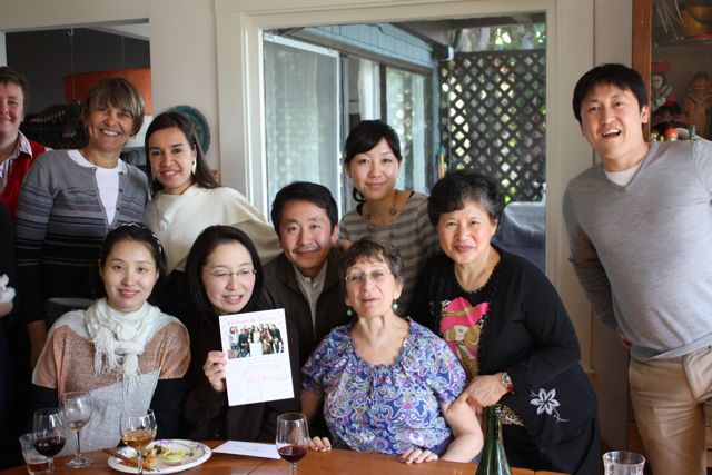 3月、いよいよバークレーを去る時には、本当にいろいろな思い出ができました。 バークレーで知り合った方々、IURDの村上さんや奥冨さん、包さん、森吉さんといった日本からのVisiting Scholar、English Conversation partnerのEva、アダルトスクールのDebbyやDavid、Miaeとサンヒョク、マリエさんと佐原さん、本当にいろいろとな方々と楽しく過ごさせていただきました。 そして、日本へのフライトの前日、アダルトスクールのDebbyに誘われて、Debbyの自宅でランチをするはずが、なんとそれがSuprise Partyでした。 これは本当に驚きで、全く予想していませんでした。 アダルトスクールの生徒皆が来てくれて、それぞれの国の料理をもってきていました。ポットラッグパーティーですね。 また食事が終わった後には、皆でブラジルのサンバなどを踊りました。 本当に楽しかったです。 この後、夜は、空港近くのホテルまで、Miaeとサンヒョクに車で送ってもらいました。お礼ということでDinnerを一緒に食べました。 本当に、思い出深い最後のバークレーとなりました。