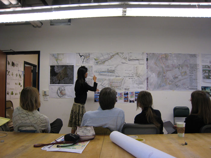 くろさきかをるです。 唐突ですが、先日、まちあるきの会を結成しました!! 月に1回程度、どこか普通なまちを味見する感覚で、まちあるきします。 6月14日(日)第1回目を開催しました。 メンバー:はぎのまさかず(0B)・くろさきかをる(M2)・しまだしゅうすけ(M2) 場所:田端〜駒込朝10:00にJR田端駅に集合しました。土地勘もあまりないので、こっち行ってみよう!あっち行ってみよう!と自由気ままに歩きました。 自由気ままと言っても、メジャーな地域資源を探さない事、自分なりにテーマ設定を行う事!それだけルールを決めました。 はぎのさんは、ひたすら門灯を探しました。 しまだくんは、ひたすら看板・表札を探しました。 わたしは、こわれたものを探しました。 まずは、はぎのさんの写真 (写真左から1・2・3) 写真1:6人家族 写真2:どれが本物でしょうか! 写真3:チューリップ 次にしまだくんの写真 (写真左から4・5・6) 写真4:ラコステ?! 写真5:ポすと 写真6:なんでサントリー? つぎにくろさきの写真 (写真左から7・8・9) 写真7:大事な植木鉢 写真8:壊れた家にスポーツジム! 写真9:クリスマスの形跡・・・ まぁこんな感じです。 その他にはこんなものもありました。 (写真左から10・11) 写真10:宣戦布告 写真11:芸術作品の展示 1〜2時間歩いて、お昼ご飯を食べて、研究室に戻ってまちあるきのレビューも簡単に行いました。 他のメンバーの撮った写真を見ながら「え?これどこにあったの?」と言い合ったり。。Google mapを見ながら、「あ〜ここ歩いてたんだ〜」などなど・・・ 知らない土地に行ってみるのは楽しかったです。 植栽がきれいに施されている家が多くありました。 (こんな所まで出していいの?と言うほど私有地からはなれた所に我が物顔でたくさんの草花があったり・・) 次回は、7月中旬を予定しています。 次回はしまだくんが企画を担当します。 OBOGのみなさん、久しぶりにまちあるきしませんか? 参加しようかな。。。という方いましたら連絡ください!! お待ちしています。 PR 志村@バークレーです。 5月9日に、バークレー訪問中の明治大学の小林正美先生、UCバークレー博士課程の村上さんと共に、East BayのTOD(Transit Oriented development)の事例巡りをしました。 写真の1枚目は、サンフランシスコのちょっと南にあるSan Mateoです。ここはTOD事例という訳ではないのですが、アムトラック(鉄道)駅とその周辺の環境改善をしています。面白いと思ったのは、駅を含めたダウンタウンの改善です。一見何の特徴もないまちなのですが、歴史的建築物の保全、景観形成、歩道の改善、駐車場の整備、小川の再生、環境にやさしいまちづくりなどに取り組んでいます。つまり頑張っている「普通のまち」といった感じです。日本と似ていますが、建築保全や景観形成は進んでいます。景観も含めて、ダウンタウンの魅力を高めて、人々のアクティビティを高めようと姿勢がはっきりしています。 2枚目の写真は、私の芝浦工大3年年生の授業でも話をしているMountain Viewの駅前メインストリート「カストロストリート」です。前回訪れたのは6年ほど前なのですが、よりアクティビティ(生活感)が増しているように思いました。ちょうど写真に写っているのは、ストリートパーキングをオープンカフェにしているところです。ここはまちのルールで、パーキングかカフェかを選べる仕組みになっています。ユニークな試みです。 この時は、他にもCrossingなどを見ました。機会があったらレポートします。 また今年度建築学会大会景観小委員会の資料集に、このSan Mateoのことなど書く予定です。そちらもご覧いただけますと幸いです。 志村です。 Urban Design Studioがあった5月9日の午後には、Institute For The Study Of Social Change (ISSC)のシンポジウムがありました。この研究所では、学生の社会貢献活動を「プロジェクト」と「インターンシップ」の二つの方法で支援しています。春学期の最後ということで、その成果発表会があったわけです(写真参照)。 活動対象地区は、オークランドやリッチモンドといったバークレー近郊都市で、内容は貧困層の移民コミュニティの実態調査と提案、犯罪や家庭内暴力の実態調査と提案といったところでした。これらのテーマは、日本とはちょっと異なりますが、地域社会の問題に取り組むといった姿勢は、日本でも参考にできるものです。 この研究所のように学生の社会貢献活動を支援している研究機関は、UCバークレーの中に20以上あります。学生たちの成果は、決して高いレベルではなく、どちらかというと学生の社会貢献活動自体に意義があって実施されているのでしょう。米国では、高等教育機関でもこのような取組が要求されているのです。 今後、このような取り組みを、いくつかブログで取り上げますが、都市計画学会機関誌「都市計画279号」の「海外特派員便り」に書きました。そちらも読んでいただけますと幸いです。 志村です。 今回はUrban Design StudioのMaster Course最終作成課題についてです。今年度は、