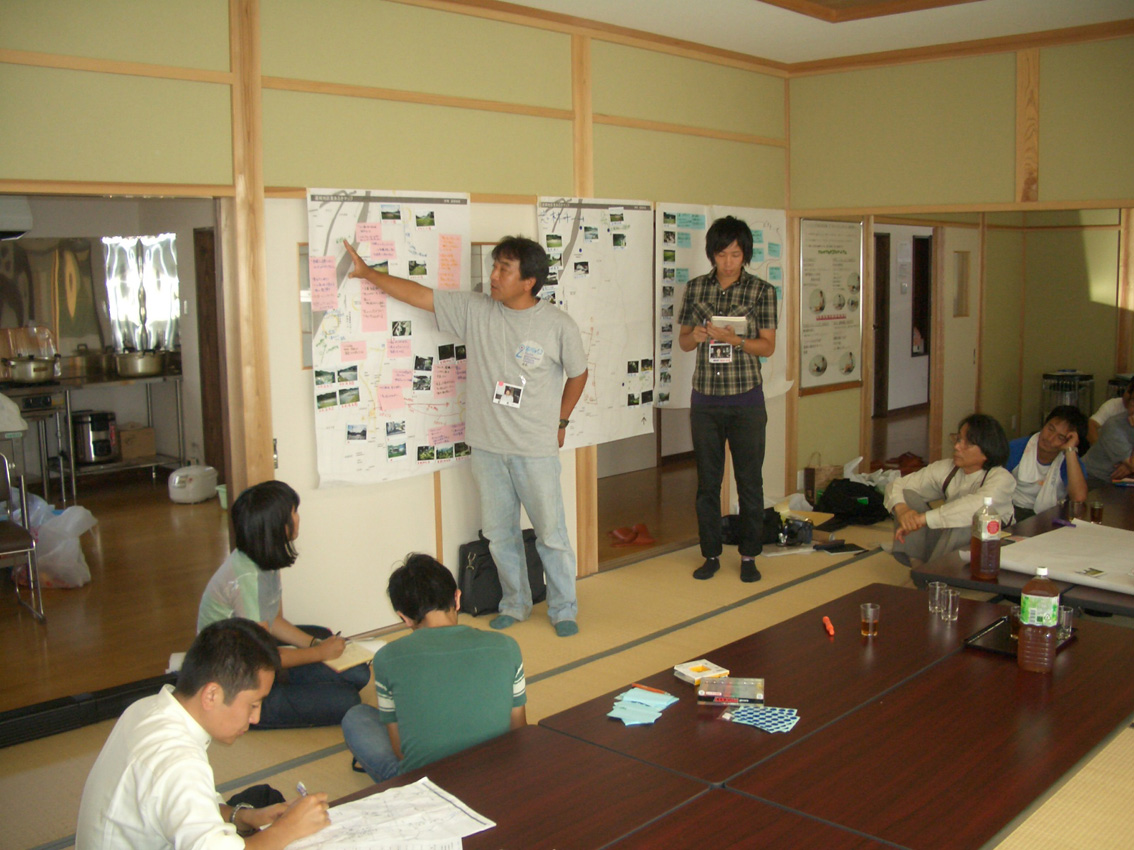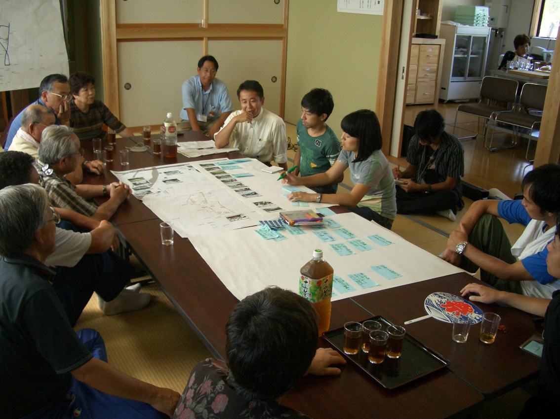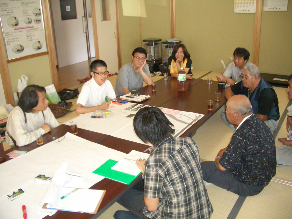 30日はたのせ集落で検討会を、31日には道城集落で里あるきWSを行いました。 道城集落は伊南地区にある集落で、今年度から活動フィールドに新しく加わった集落です。 今回が道城集落でのはじめてのWSということで、集落の方々と一緒に里あるきを行い、 見つけた魅力、資源についてまとめることをしました。 WSは三井所先生班と志村先生班の2班に分かれて行いました。 まずは午前中です。 広瀬神社 9月のお祭りのときにはここから神輿が出され、参道を 下ります。 道なき道を進み・・・ 登った先には・・・ 公園(予定地)があります。ここからは集落が一望できます。将来は山桜などを植えて、 お花見などをできるようにすることを考えています。 見晴らし抜群! 古町温泉(赤岩荘) アユのヤナ場づくり 昼食は集落の方々が作ってくれたものをみんなで一緒に頂きました。 特にきゅうりやトマトなど野菜が新鮮でとてもおいしかったです。 昼食休憩後、里あるきを再開しました。 清水が湧いているところ 昔は生活用水として使っていたみたいです。 照国寺(左)や護摩堂(右)など寺社もあります。 里あるきの後は、みんなで情報を整理し、まとめます。 様々な意見が出ました。 それぞれまとめたものを地図におとしこみ、発表しました。 最後はみんなでパシャリ、記念写真! 次回はたのせの検討会が明日10月4日、道城が10月25日に行われる予定です。 さらに、10月26日には前沢曲家まつり、たのせ農村公園まつりが開催されます。 詳細についてはおってアップしますので、乞うご期待!