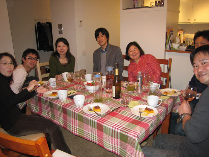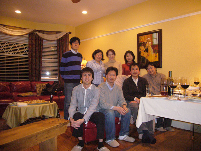 今回はUCバークレーでご一緒している日本からの外来研究者(Visiting Scholar)らとの楽しい集まりについて書きます。 このトピックについては、どうしても皆さんの写真が載ってしまうなど、個人情報に関わることなので今まで書くのを避けてきました。しかしあまりにも楽しいことをご一緒させていただいているので、写真を掲載しても良いという皆さんのご了解を得た上で、この記事を書くことにしました。 何が楽しいかというと「パーティー」です。食事会も何度もしていますが、大きなパーティーですと、まずThanks Givingでパーティーをしました。 その後には、1枚目の写真の「忘年会&クリスマスパーティー」がありました。 パーティーのリーダーは、慶応大学の森吉さん(写真中央)です。とにかく料理が上手い方です。特にデザートは最高です。英語のゲームを企画したりと、本当にパーティーを盛り上げていただきました。 パーティーで多くの芸を披露していただいたのが、首都大学東京の伊藤さん(一番右)です。さすがに知識が豊富で、会話がまず面白かったのですが、先日の「お別れ会パーティー」では早口言葉のレパートリーを披露していただきました。 右側でちょっとだけ写っていますのが、やはり慶応大学の段さん(2枚目写真では中央右)です。段さんはスタンフォード大学の外来研究者なのですが、スタンフォードから何度もパーティーに参加されていました。中国の方なのですが、すごく日本語がお上手で、日本人と言われても分からないほどです。 2枚目の写真は、今年の「新年会パーティー」です。これは、これまでにもこのブログに登場している奥冨さん、包さん(写真後列左のお二人)宅で開かれました。 とにかく包さんの中華料理がおいしかったです。奥冨さんも一緒に料理をされるのですが、やはり料理がお上手です。 この時の料理の量は、本当にすごかったです。これが中国風なのでしょう。 写真の一番前に座っているのが、岩崎さんです。岩崎さんは外来研究者ではないのですが、森吉さんの教え子ということで、何度もパーティーをご一緒させていただきました。最若手ということで、パーティーの後の片付けを率先してやっていただいてしまいました。 皆さん日本ではお忙しいわけですが、ここではその忙しさから少し離れることができます。これらのパーティーは、本当に楽しいバークレーでの思い出になります。