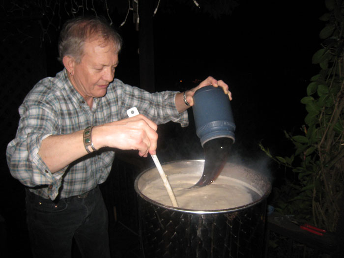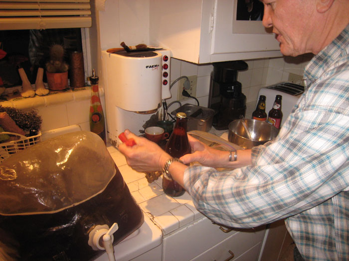 ここバークレーでは、本当に楽しい・面白い経験をしています。 その一つが、「自家製ビールづくり」の見学です。アダルトスクールの英語の先生Debbyのご主人DavidはすでにThanks Givingパーティーの時に登場しています。そのDavidの趣味が「自家製ビールづくり」なのです。 私もビールが好きで、以前Debby・Davidご夫婦を寿司レストランにご招待した時には、日本のビールをいろいろと紹介しました。 また私が東京の地元・月島で「路地ビール」を販売しているという話もしていました。 そこでビールづくりに招待された訳です。 ビールづくりの工程について簡単に説明しますと、 まずタンクにMalt(モルト)を入れて、1時間半ほど煮込みます(写真1)。最初に粉末のモルトを入れて、しばらくしてから液体のモルトを入れます。 モルトを食べさせてもらいましたが、すごい甘いのです。 つぎにそこにホップを入れます。ホップは粉末を固めた状態になっています(写真2)。Davidは色々なホップを集めていて、やはりビールの風味はホップで決まるそうです。こだわっていました。 これも味見をさせてもらいましたが、苦かったです。 その後、1か月間ほど寝かせておきます。発酵させるためですね。 それを少し水で薄めてさらに少し発酵させて完成です。 完成したらびん詰をします(写真3)。 Davidはびん詰めの道具までもっています。 Davidのビールは風味があって本当に美味しいです。ちなみにこの日つくったものはScotticsh Aleでした。 こちらでは、Aleビールはおいしいですね。ビール文化は進んでいると思います。 バークレーには、家庭用ビールづくりのための「キット」が売っているそうです。それを購入すれば手軽に(?)ビールがつくれると、私にもそのキットを買って日本に帰るように強くすすめられました。 いつか本当に、自家製「路地ビール」をつくりたいものです。