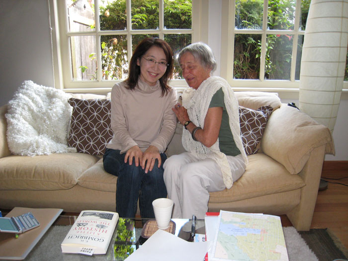 こちら米国バークレーでの留学生活も残り少なくなってきました。 この1年間、充実した生活を過ごすことができたのは、いろいろと助けてくれた人たちが居たからでした。 その中で、まだこのブログで紹介していなかった重要な人が居ます。 YWCAのEnglish Conversation Partner、Evaです。 YWCAでは、英会話の練習をサポートするボランティアが居て、年間登録費$15を支払うと、そのボランティアを紹介してもらえます。 我々には、Evaが紹介されて、この1年間、英会話パートナーとなってくれました。 Evaは第2次世界大戦の時に、チェコスロバキアから米国に移住してきました。はじめは東海岸に住んでいましたが、その後、このバークレーに移り住んできました。 Evaの話は、英会話の練習になるだけではなく、激動の20世紀の生き証人のような人で、とても興味深かったです。ドイツのチェコ侵略、共産政権の樹立、彼女はすでに米国に居ましたが、共産政権の崩壊、チェコとスロバキアの分裂、米国の発展と全て体験してきた訳ですから。 それらを時々「さらっと」と話すわけですが、実態を物語っており面白かったですね。 とてもありがたかったのは、私の昨年11月のIURD講演についていろいろと助けてくれたことです。特に発音の特訓をしてくれました。 すっかり仲良くなり、この正月元旦には自宅のランチに招待してもらいました。 これからも元気でいてほしいものです。 PR